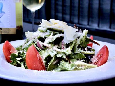 Mixed greens, roma tomatoes and red onions tossed with our famous Galluzzo’s balsamic honey vinaigrette and topped with parmigiano.